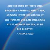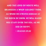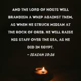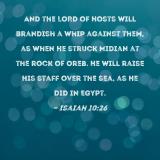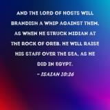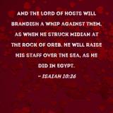 And the LORD of Hosts will brandish a whip against them, as when He struck Midian at the rock of Oreb. He will raise His staff over the sea, as He did in Egypt.