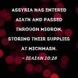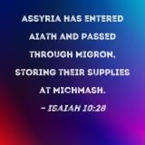 Assyria has entered Aiath and passed through Migron, storing their supplies at Michmash.