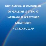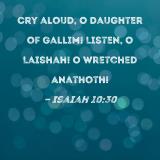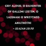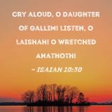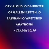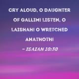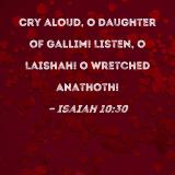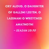 Cry aloud, O Daughter of Gallim! Listen, O Laishah! O wretched Anathoth!