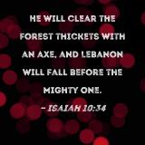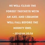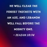 He will clear the forest thickets with an axe, and Lebanon will fall before the Mighty One.