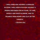 I will send him against a godless nation; I will dispatch him against a people destined for My rage, to take spoils and seize plunder, and to trample them down like clay in the streets.