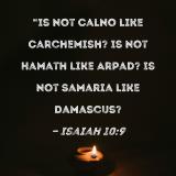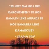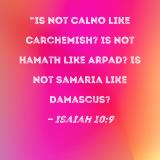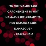 "Is not Calno like Carchemish? Is not Hamath like Arpad? Is not Samaria like Damascus?