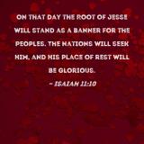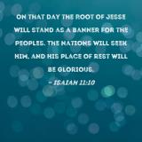 On that day the Root of Jesse will stand as a banner for the peoples. The nations will seek Him, and His place of rest will be glorious.