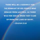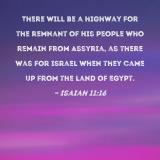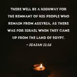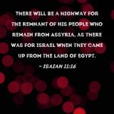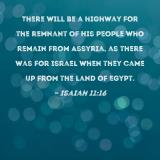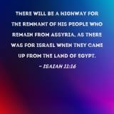 There will be a highway for the remnant of His people who remain from Assyria, as there was for Israel when they came up from the land of Egypt.