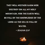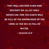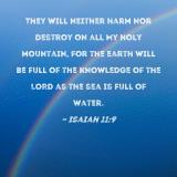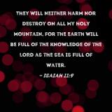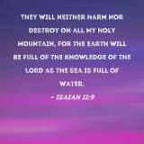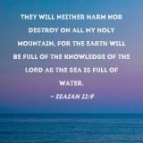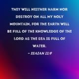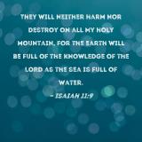 They will neither harm nor destroy on all My holy mountain, for the earth will be full of the knowledge of the LORD as the sea is full of water.