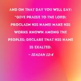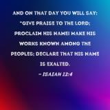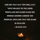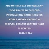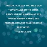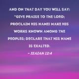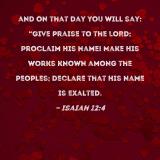 and on that day you will say: "Give praise to the LORD; proclaim His name! Make His works known among the peoples; declare that His name is exalted.