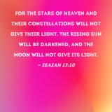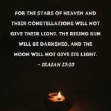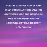 For the stars of heaven and their constellations will not give their light. The rising sun will be darkened, and the moon will not give its light.