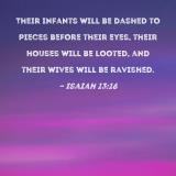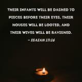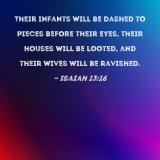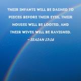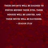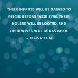 Their infants will be dashed to pieces before their eyes, their houses will be looted, and their wives will be ravished.