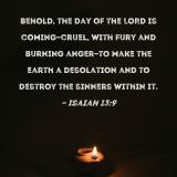 Behold, the Day of the LORD is coming--cruel, with fury and burning anger--to make the earth a desolation and to destroy the sinners within it.