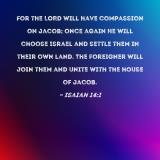 For the LORD will have compassion on Jacob; once again He will choose Israel and settle them in their own land. The foreigner will join them and unite with the house of Jacob.