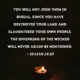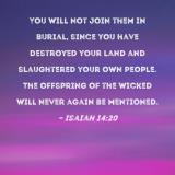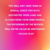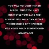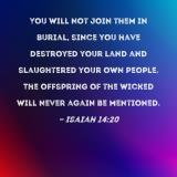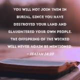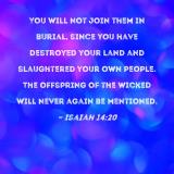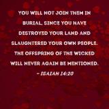 You will not join them in burial, since you have destroyed your land and slaughtered your own people. The offspring of the wicked will never again be mentioned.