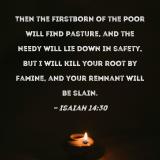 Then the firstborn of the poor will find pasture, and the needy will lie down in safety, but I will kill your root by famine, and your remnant will be slain.