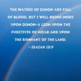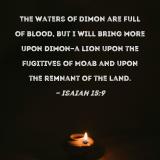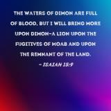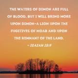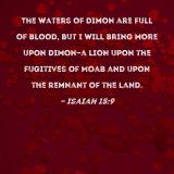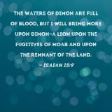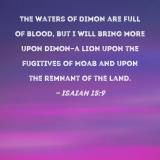 The waters of Dimon are full of blood, but I will bring more upon Dimon--a lion upon the fugitives of Moab and upon the remnant of the land.