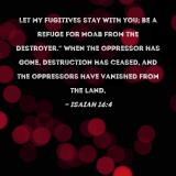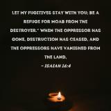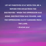 Let my fugitives stay with you; be a refuge for Moab from the destroyer." When the oppressor has gone, destruction has ceased, and the oppressors have vanished from the land,