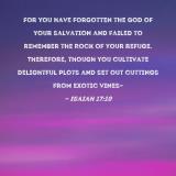 For you have forgotten the God of your salvation and failed to remember the Rock of your refuge. Therefore, though you cultivate delightful plots and set out cuttings from exotic vines--