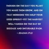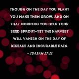 though on the day you plant you make them grow, and on that morning you help your seed sprout--yet the harvest will vanish on the day of disease and incurable pain.