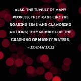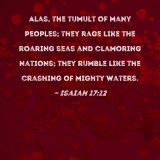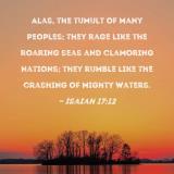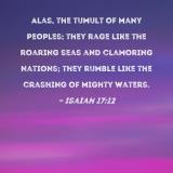 Alas, the tumult of many peoples; they rage like the roaring seas and clamoring nations; they rumble like the crashing of mighty waters.