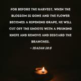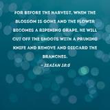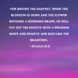 For before the harvest, when the blossom is gone and the flower becomes a ripening grape, He will cut off the shoots with a pruning knife and remove and discard the branches.