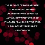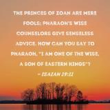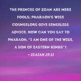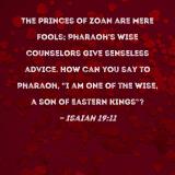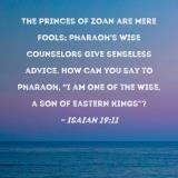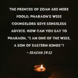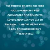 The princes of Zoan are mere fools; Pharaoh's wise counselors give senseless advice. How can you say to Pharaoh, "I am one of the wise, a son of eastern kings"?