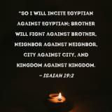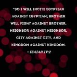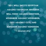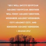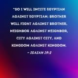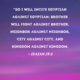 "So I will incite Egyptian against Egyptian; brother will fight against brother, neighbor against neighbor, city against city, and kingdom against kingdom.