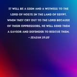 It will be a sign and a witness to the LORD of Hosts in the land of Egypt. When they cry out to the LORD because of their oppressors, He will send them a savior and defender to rescue them.