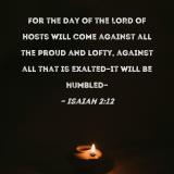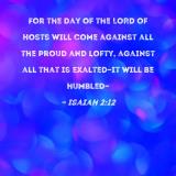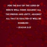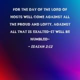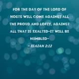 For the Day of the LORD of Hosts will come against all the proud and lofty, against all that is exalted--it will be humbled--
