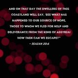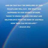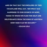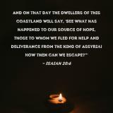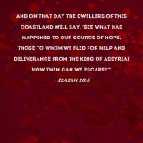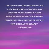 And on that day the dwellers of this coastland will say, 'See what has happened to our source of hope, those to whom we fled for help and deliverance from the king of Assyria! How then can we escape?'"
