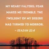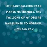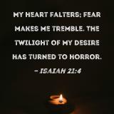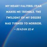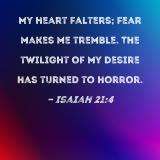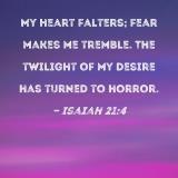 My heart falters; fear makes me tremble. The twilight of my desire has turned to horror.