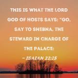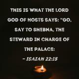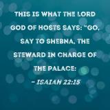 This is what the Lord GOD of Hosts says: "Go, say to Shebna, the steward in charge of the palace: