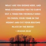 What are you doing here, and who authorized you to carve out a tomb for yourself here--to chisel your tomb in the height and cut your resting place in the rock?