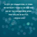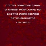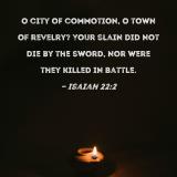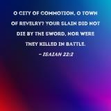 O city of commotion, O town of revelry? Your slain did not die by the sword, nor were they killed in battle.