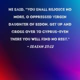 He said, "You shall rejoice no more, O oppressed Virgin Daughter of Sidon. Get up and cross over to Cyprus--even there you will find no rest."