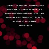 At that time Tyre will be forgotten for seventy years--the span of a king's life. But at the end of seventy years, it will happen to Tyre as in the song of the harlot: