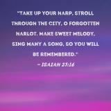 "Take up your harp, stroll through the city, O forgotten harlot. Make sweet melody, sing many a song, so you will be remembered."