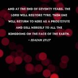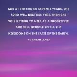 And at the end of seventy years, the LORD will restore Tyre. Then she will return to hire as a prostitute and sell herself to all the kingdoms on the face of the earth.