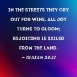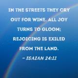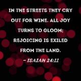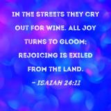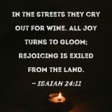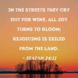 In the streets they cry out for wine. All joy turns to gloom; rejoicing is exiled from the land.