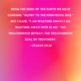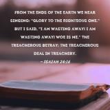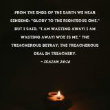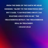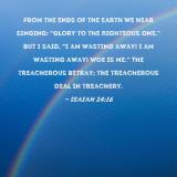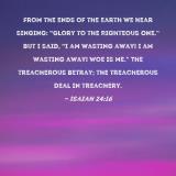From the ends of the earth we hear singing: "Glory to the Righteous One." But I said, "I am wasting away! I am wasting away! Woe is me." The treacherous betray; the treacherous deal in treachery.