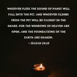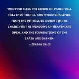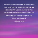Whoever flees the sound of panic will fall into the pit, and whoever climbs from the pit will be caught in the snare. For the windows of heaven are open, and the foundations of the earth are shaken.