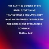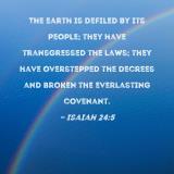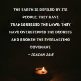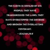 The earth is defiled by its people; they have transgressed the laws; they have overstepped the decrees and broken the everlasting covenant.