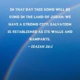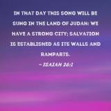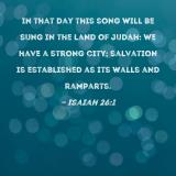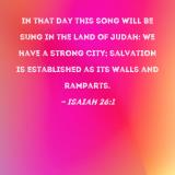 In that day this song will be sung in the land of Judah: We have a strong city; salvation is established as its walls and ramparts.