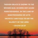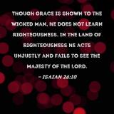 Though grace is shown to the wicked man, he does not learn righteousness. In the land of righteousness he acts unjustly and fails to see the majesty of the LORD.