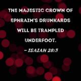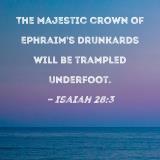The majestic crown of Ephraim's drunkards will be trampled underfoot.