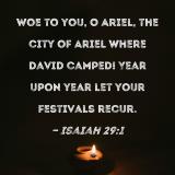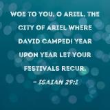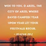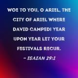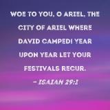 Woe to you, O Ariel, the city of Ariel where David camped! Year upon year let your festivals recur.