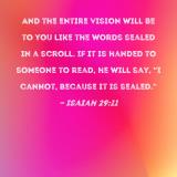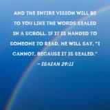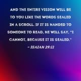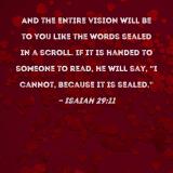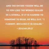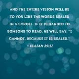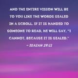 And the entire vision will be to you like the words sealed in a scroll. If it is handed to someone to read, he will say, "I cannot, because it is sealed."