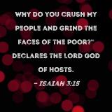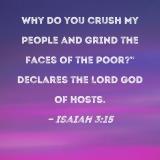 Why do you crush My people and grind the faces of the poor?" declares the Lord GOD of Hosts.