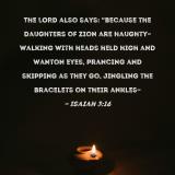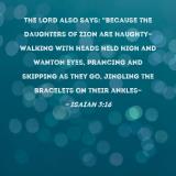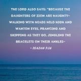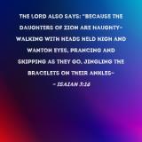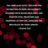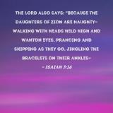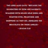 The LORD also says: "Because the daughters of Zion are haughty--walking with heads held high and wanton eyes, prancing and skipping as they go, jingling the bracelets on their ankles--