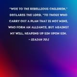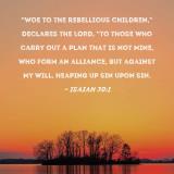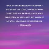 "Woe to the rebellious children," declares the LORD, "to those who carry out a plan that is not Mine, who form an alliance, but against My will, heaping up sin upon sin.