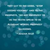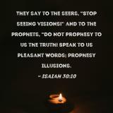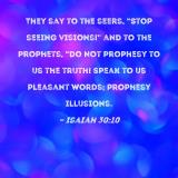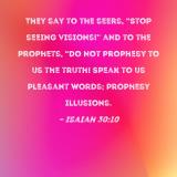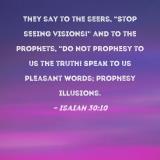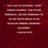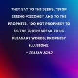 They say to the seers, "Stop seeing visions!" and to the prophets, "Do not prophesy to us the truth! Speak to us pleasant words; prophesy illusions.