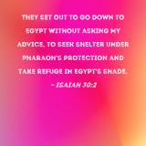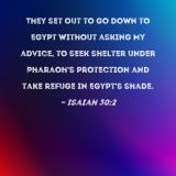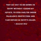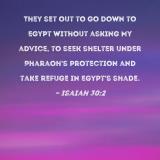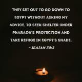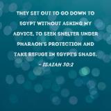 They set out to go down to Egypt without asking My advice, to seek shelter under Pharaoh's protection and take refuge in Egypt's shade.