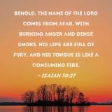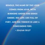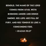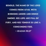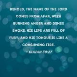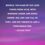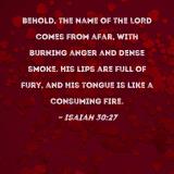Behold, the Name of the LORD comes from afar, with burning anger and dense smoke. His lips are full of fury, and His tongue is like a consuming fire.